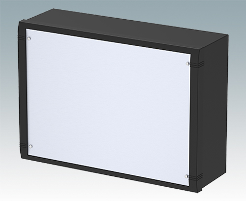 Modern aluminium wall mount enclosure for indoor electronics equipment. The enclosure provides total access to the electronics during installation on the wall. Stylish design with die cast front bezel, top cover and 'L' shape rear panel. Order front panels separately.