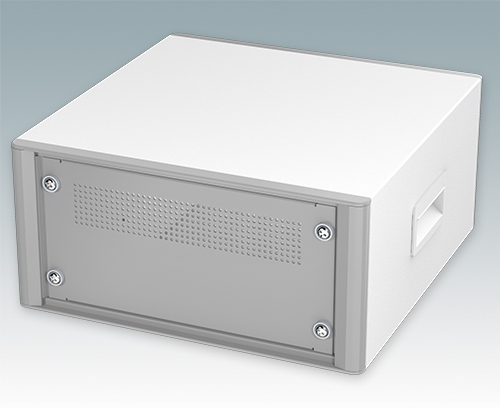 Modern and highly attractive 10.5" instrument enclosure for mounting 3U subracks (42HP), chassis or front panels. Conforms to DIN 41494 & IEC 297. Stylish front and rear bezels are fitted to the aluminium case body. Clip-on trims at the front and rear hide the assembly screws giving a very professional appearance. All case panels fitted with M4 threaded pillars for earth connection. The case is supplied with a rear panel, two ABS side handles and four ABS non-slip feet. Ventilation slots are provided in the base and rear panel. Internal chassis runners support the 10.5" equipment.