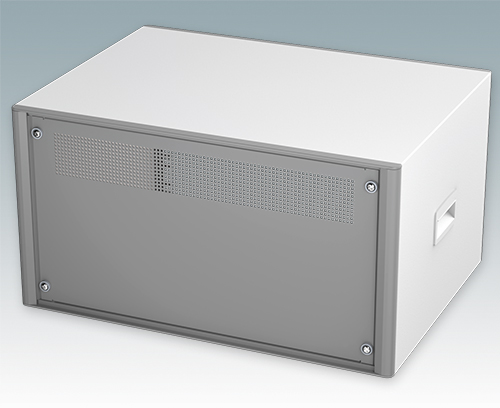 The case is supplied with a rear panel, two ABS side handles and four ABS non-slip feet. Ventilation slots are provided in the base and rear panel. Internal chassis runners support the 19" equipment.